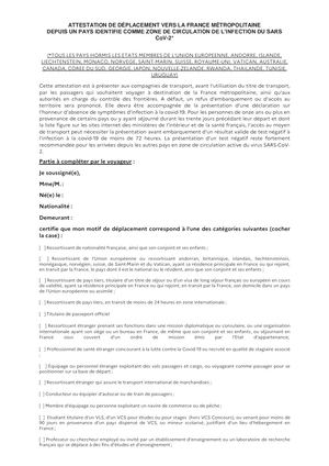 21 09 2020 Attestation De Deplacement Vers La France Metropolitaine