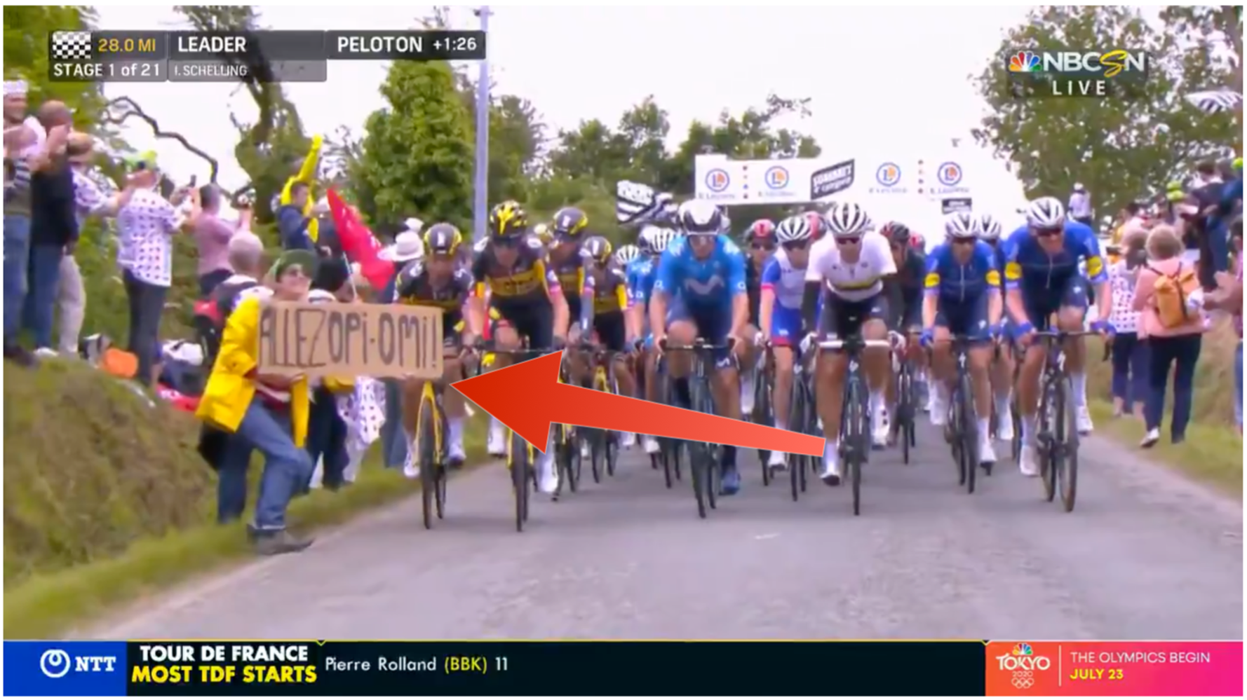 You may also like. 1022am EDT 1022 Jasha Sütterlin Team. Tour de France fan sign causes pile-up crash in Stage 1.